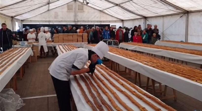 Ο βέλγος σοκολατοποιός Ζαν-Φιλίπ Νταρσί με τη βοήθεια 30 μαθητευόμενων ζαχαροπλαστών παρασκεύασε το γλύκισμα μήκους 676,614 μέτρων.