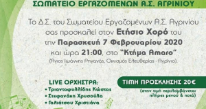 Αγρίνιο – Party Φ.Ο.Ε.Α.Π.Π.Α.: Πάρτι ενίσχυσης της ομάδας εθελοντισμού – ανθρωπισμού θα πραγματοποιηθεί την Παρασκευή, 24 Ιανουαρίου 2020 στους Διόσκουρους (Α’ Πάροδος Μεσολογγίου 1) το οποίο...