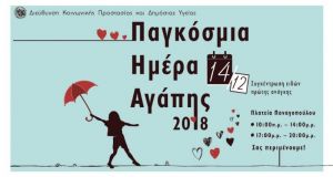 Την Παρασκευή 14 Δεκεμβρίου 2018, με αφορμή την Παγκόσμια Ημέρα Αγάπης, από 10:00π.μ. -14:00μ.μ. και από 17:00 μ.μ. έως 20:00 μ.μ, η Διεύθυνση Κοινωνικής Προστασίας &...