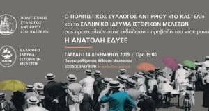 Το Ελληνικό Ίδρυμα Ιστορικών Μελετών (ΙΔΙΣΜΕ) σε συνεργασία με τον Πολιτιστικό Σύλλογο Αντιρρίου «το Καστέλι» παρουσιάζει το Σάββατο 14 Δεκεμβρίου 2019 και ώρα 19:00 στην Παπαχαραλάμπειο...