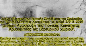 Ενόψει της συζήτησης στο Δημοτικό Συμβούλιο Ξηρομέρου στις 21.11.2019 για την ανακήρυξη των χωριών Αγράμπελα, Μαχαιρά, Πρόδρομος και Χρυσοβίτσα ως μαρτυρικά χωριά σύμφωνα με τον Νόμο...