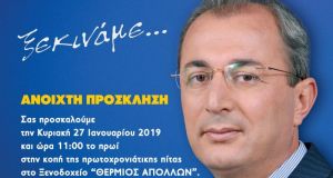 Σας προσκαλούμε την Κυριακή 27 Ιανουαρίου 2019 και ώρα 11:00 το πρωί στην κοπή της πρωτοχρονιάτικης πίτας στο Ξενοδοχείο “ΘΕΡΜΙΟΣ ΑΠΟΛΛΩΝ” . Η παρουσία σας θα...