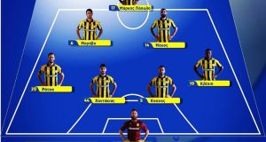Η ενδεκάδα του Παναιτωλικού: Κυριακίδης, Κλέσιο, Ρότσα, Κούσας, Χαντάκιας, Μάκος, Πάουλο, Λόπες, Μπράβο, Ρόσα, Μαρκόβσκι. Στον πάγκο: Καβουσάκης, Ροντρίγκες, Κουτρομάνος, Μουνιός, Παπαδόπουλος, Ρέι Η ενδεκάδα...