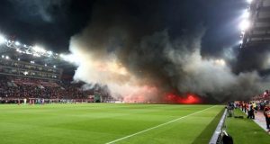 Μαύρος καπνός κάλυψε το Καραϊσκάκη λίγο πριν τη σέντρα στο μεγάλο ντέρμπι. Οι οπαδοί του Ολυμπιακού είχαν… προειδοποιήσει λίγη ώρα πριν την έναρξη του ντέρμπι με...