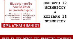Η ΟΒ μαθητών Αγρινίου της ΚΝΕ διοργανώνει τουρνουά ποδοσφαίρου 5×5, μπάσκετ 3on3 και βόλεϊ το Σαββατοκύριακο 12-13 Νοέμβρη, το οποίο είχε αναβληθεί την προηγούμενη εβδομάδα λόγω...