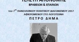 Τελετή Απονομής – Βραβείων και Επαίνων του 7ου Πανελλήνιου Ποιητικού Διαγωνισμού 2017 Αφιερωμένου στο Λογοτέχνη Πέτρο Δήμα Παπαστράτειο Μέγαρο Αγρινίου Σάββατο, 24 Φεβρουαρίου 2018, ώρα 19:00...