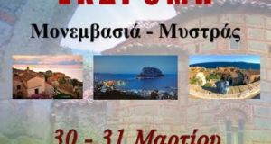 Με χαρά σας ανακοινώνουμε την διοργάνωση της φετινής μας διήμερης Εκδρομής, στην μαγευτική Μονεμβασιά! Η εκδρομή θα πραγματοποιηθεί Σαββατό/Κυριακή, στις 30-31 Μαρτίου. Τιμή 70 ευρώ με...