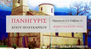 Σημαντικά και ιστορικά γεγονότα θα ζήσει η Ιερά Μονή Αμπελακιωτίσσης στην Εορτή και Πανήγυρι του Αγίου Πολυκάρπου το Σάββατο 23 Φεβρουαρίου. Ο Σεβασμιώτατος Μητροπολίτης Ναυπάκτου και Αγίου Βλασίου κ.κ...