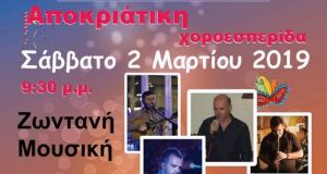 Αποκριάτικη χοροεσπερίδα διοργανώνεται από συλλόγους του χωριού μας, το Σάββατο 2 Μαρτίου 2019, στις 9.30 το βράδυ, στον Πολυχώρο «Εμιλέον», με λαϊκή ορχήστρα, λαχειοφόρο αγορά και...