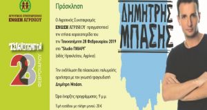 Ο Αγροτικός Συνεταιρισμός ΕΝΩΣΗ ΑΓΡΙΝΙΟΥ πραγματοποιεί την ετήσια χοροεσπερίδα του την Τσικνοπέμπτη 28 Φεβρουαρίου 2019, στο εστιατόριο “studio Πιθάρι” , στην οδό Ηρακλείτου στο Αγρίνιο. Την εκδήλωση...