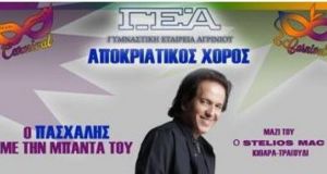 Η Γυμναστική Εταιρεία Αγρινίου, διοργανώνει το Σάββατο 2 ΜαρτίουΑποκριάτικο Χορό στο κέντρο Πιθάρι (Γιαννούζι Αγρινίου), με τον γνωστό τραγουδιστή Πασχάλη Αρβανιτίδη. Ο καλλιτέχνης που τα τραγούδια του αποτελούν σταθμό...
