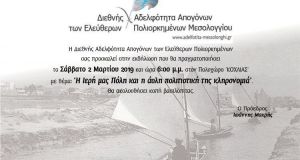 Η Διεθνής Αδελφότητα Απογόνων των Ελεύθερων Πολιορκημένων πραγματοποιεί εκδήλωση με θέμα: «Η Ιερή μας Πόλη και η αύλη πολιτιστική της κληρονομιά» το Σάββατο 2 Μαρτίου στον...