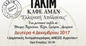 Ο Λαογραφικός Όμιλος της Γυμναστικής Εταιρείας Αγρινίου (ΓΕΑ) διοργανώνει στις 4 Δεκεμβρίου 2017 και ώρα 8:30 μμ, μια μεγάλη μουσική παράσταση με το ιδιαίτερο μουσικό σχήμα...
