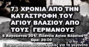 6 Αυγούστου 1944. 600 περίπου Γερμανοί Στρατιώτες εφορμούν στην περιοχή των Παρακαμπυλίων, στον Άγιο Βλάση και τη Χούνη. Κατέκαυσαν περιουσίες και ολόκληρα χωριά. Καταστρέφουν τον Άγιο Βλάση...