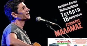 Την Τετάρτη 16 Αυγούστου, στο Δασύλλιο Λουτρά Χαλκιοπούλων, ο μοναδικός Σωκράτης Μάλαμαςμας ταξιδεύει σε ονειρεμένα μουσικά ταξίδια. Συνδιοργανωτές οι Α.Ε. Βάλτου, Δήμος Αμφιλοχίας,Περιφέρεια Δυτικής Ελλάδος. Τον Σωκράτη Μάλαμα, θα συνοδεύσουν: Λαμπρινή...