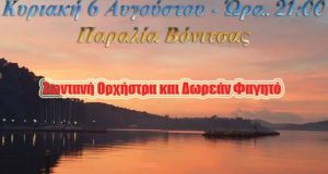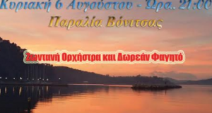 Mια μαγική βραδιά θα απολαύσουν όσοι βρεθούν το Σάββατο 6 Αυγούστου 21.30 στην Βόνιτσα Θα έχουν τη δυνατότητα να απολαύσουν την ξεχωριστή –μελωδική Βαρκαρόλα στην...