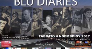 Το ΔΗ.ΠΕ.ΘΕ. Αγρινίου φιλοξενεί και παρουσιάζει την “Blu DIARIES the Band” το Σάββατο 4 Νοεμβρίου 2017 στις 9.00 μ.μ. στην αίθουσα του Δημοτικού Θεάτρου. Οι“Blu DIARIES...