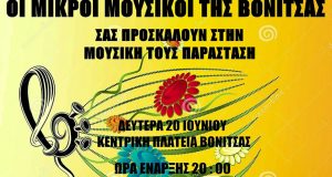Μαγική βραδιά με τους Μικρούς Μουσικούς την Δευτέρα 20 Ιουνίου στην Πλατεία της Βόνιτσας Το Ν.Π.Δ.Δ. του Δήμου Ακτίου Βόνιτσας σας προσκαλεί στην Συναυλία των Μικρών...