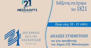 Ο Δήμος Ι.Π. Μεσολογγίου συμμετέχοντας στη δράση «Βαδίζοντας στα Αχνάρια του 1821», που υλοποιείται από την Επιτροπή «Ελλάδα 2021», καλεί τους νέους και τις νέες, ηλικίας...