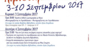 Κυριακή 3 Σεπτεμβρίου 2017 Ώρα 20:00 Εγκαίνια έκθεσης φωτογραφίας με θέμα: «Φωτογραφίζοντας τη λιμνοθάλασσα – φωτογραφίζοντας στη λιμνοθάλασσα» Στο χώρο της παλιάς Βαλβείου Βιβλιοθήκης, πλησίον Αγίου...