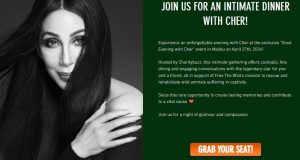 Θέλοντας να υποστηρίξει έμπρακτα το ίδρυμα «Free The Wild», η Σερ έβγαλε σε πλειστηριασμό ένα προσωπικό γεύμα μαζί της στο σπίτι της στο Μαλιμπού. @cher Final day to...