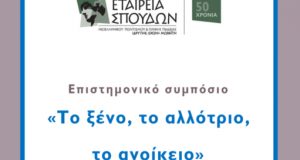 Η Εταιρεία Σπουδών της Σχολής Μωραΐτη διοργανώνει επιστημονικό συμπόσιο με θέμα: «Το ξένο, το αλλότριο, το ανοίκειο». Τρεις λέξεις που συμπυκνώνουν και τη θεματολογία του: το...