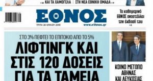 Αναστέλλεται η ημερήσια έκδοση της εφημερίδας «Έθνος» και το πρωτοσέλιδο της Τρίτης είναι το τελευταίο. Στο τελευταίο ημερήσιο πρωτοσέλιδό του, το Έθνος έχει πρώτο θέμα τις...