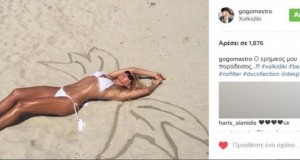 Σαν αγγελάκι βγαλμένο από παραμύθι πόζαρε η Γωγώ Μαστροκώστα! Ξαπλωμένη με ένα ολόλευκο μπικίνι δίπλα στα ζωγραφισμένα στην άμμο τεράστια φτερά της, η γυμνάστρια μας...