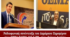 Ραδιοφωνική συνέντευξη έδωσε ο Δήμαρχος Ξηρομέρου Γιάννης Τριανταφυλλάκης, το Σάββατο 28 Νοεμβρίου, στο «ΘΕΜΑ Radio 104.6 FM», στην πρωινή εκπομπή «Σκοίλ Ελικίκου» με τον Γιάννη Αντύπα. Θέμα...