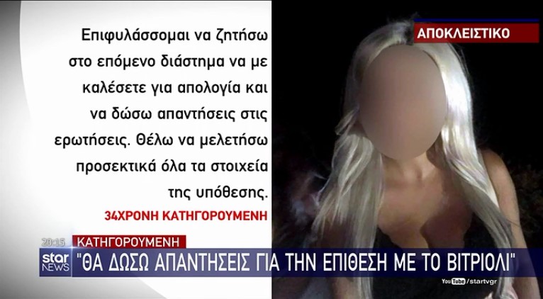 Έτοιμη να δώσει απαντήσεις στα ερωτήματα των ανακριτών δηλώνει η κατηγορούμενη για την επίθεση με βιτριόλι στην 34χρονη Ιωάννα στην Καλλιθέα, τρεις μήνες περίπου μετά την...