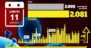 Δείτε στο infographic που ακολουθεί τα συνολικά στοιχεία που ισχύουν μέχρι το Σάββατο, 11 Απριλίου 2020 σχετικά με τα κρούσματα και τους θανάτους από κορωνοϊό, ανά...
