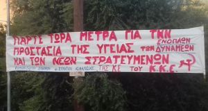 Πανό έξω από το Στρατόπεδο «Μουστακλή» στο Μεσολόγγι, στο 2/39 Σύνταγμα Ευζώνων, ανάρτησε η Επιτροπή Ενόπλων Δυνάμεων και των Σωμάτων Ασφαλείας της Κ.Ε. του Κ.Κ.Ε. Με...