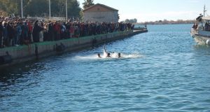 Κάτω από δύσκολες καιρικές συνθήκες,με το θερμόμετρο να δείχνει -3 C πραγματοποιήθηκε και φέτος ο Αγιασμός των Υδάτων, η κατάδυση του Τιμίου Σταυρού και η κοπή της...