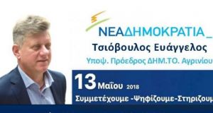 O Ευάγγελος Τσιόβουλος με την ακόλουθη ανακοίνωση ανακοίνωσε την υποψηφιότητά του για Πρόεδρος της ΔΗΜ.Τ.Ο. Αγρινίου στις εκλογές της 13ης Μαΐου. Η ανακοίνωση του κ. Τσιόβουλου...