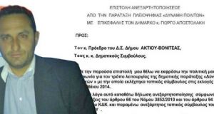Βαθαίνει η εσωτερική κρίση στην Δημοτική παράταξη του Δημάρχου Ακτίου-Βόνιτσας κ. Γιώργου Αποστολάκη. Ο κ. Γιώργος Ζαφείρης ο οποίος διετέλεσε 8 χρόνια πρόεδρος της Τ.Κ. Αετού Ξηρομέρου (Δήμου Ακτίου Βόνιτσας) και σήμερα τοπικός σύμβουλος υπέβαλε...