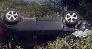 Ο οδηγός εγκλωβίστηκε καθώς το τζιπ είχε γύρει προς στα αριστερά με την πόρτα του να μην μπορεί να ανοίξει καθώς την εμπόδιζαν τα βράχια και...