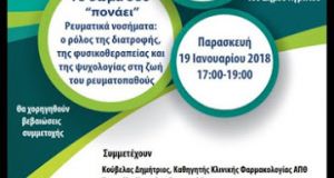 Με κεντρικό μήνυμα …..το σώμα σου «πονάει» ο Σύλλογος ΕΛΕΑΝΑ, διοργανώνει εκδήλωση ενημέρωσης και ευαισθητοποίησης του κοινού με θέμα:«Ρευματικά Νοσήματα: ο ρόλος της διατροφής, της φυσικοθεραπείας...