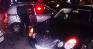 Σκηνές ταινίας πριν από λίγα λεπτά στο κέντρο της Αμφιλοχίας όταν αυτοκίνητο ΙΧΕ έπεσε πάνω σε σταθμευμένα αυτοκίνητα στην οδό Ν.Στράτου στο ύψος της ΑLPHA BANK...