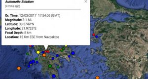 Σεισμός 3,1 βαθμών της κλίμακας Ρίχτερ σημειώθηκε λίγο πρν από τις 20:00 το βράδυ της Κυριακής (12.03.2017) κοντά στη Ναύπακτο. Σύμφωνα με το Γεωδυναμικό Ινστιτούτο του...