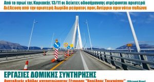 Εργασίες δομικής συντήρησης στον αρμό συστολής – διαστολής της Γέφυρας «Χαρίλαος Τρικούπης» στην πλευρά του Ρίου, πρόκειται να ξεκινήσουν το πρωί της Κυριακής 13 Νοεμβρίου, με...