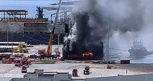 Το πλοίο παραμένει στο Λιμάνι του Αστακού, με τους Πυροσβέστες να προσπαθούν να σβήσουν τη φωτιά που εκδηλώθηκε χθες, από την είσοδο οξυγόνου… Συνεχίζεται και σήμερα...