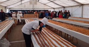 Ο βέλγος σοκολατοποιός Ζαν-Φιλίπ Νταρσί με τη βοήθεια 30 μαθητευόμενων ζαχαροπλαστών παρασκεύασε το γλύκισμα μήκους 676,614 μέτρων. Ομάδα βέλγων ζαχαροπλαστών κατέρριψε ένα νέο παγκόσμιο ρεκόρ με...