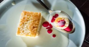 Υλικά Για το γαλατένιο κέικ: 420 γρ. ζάχαρη 4 αυγά 90 ml γάλα πλήρες μακράς διαρκείας 155 γρ. αλεύρι για όλες τις χρήσεις 5 γρ. μπέικιν πάουντερ...