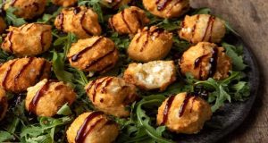 Συστατικά 1 λίτρο ηλιέλαιο, για το τηγάνισμα 1 αυγό, μεσαίο 100 γρ. γάλα, 3,5% 40 γρ. νερό 1 κ.γ. ζάχαρη κρυσταλλική 40 γρ. ελαιόλαδο 1 κ.σ. ρίγανη, ξερή πιπέρι 200 γρ. αλεύρι που φουσκώνει μόνο του 300 γρ. φέτα Για το σερβίρισμα ρόκα κρέμα βαλσάμικο Μέθοδος Εκτέλεσης...