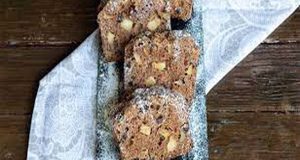 Συστατικά 300 γρ. μήλα χυμό λάιμ, από 1 λάιμ 50 γρ. ηλιέλαιο 150 γρ. γιαούρτι στραγγιστό 2 αυγά, μεσαία 200 γρ. ζάχαρη καστανή 1 κ.σ. κανέλα 50 γρ. σταφίδες μαύρες 20 γρ. κονιάκ 300 γρ. αλεύρι χωρίς γλουτένη 1 πρέζα αλάτι 1 κ.σ. μπέικιν πάουντερ, χωρίς γλουτένη 1/2 κ.γ. σόδα μαγειρική, χωρίς γλουτένη...
