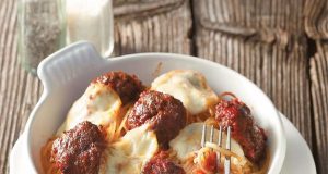 Υλικά 1 πακέτο σπαγγέτι 3 κεφαλάκια μοτσαρέλα, σε φέτες Για τα κεφτεδάκια 600γρ. κιμά μοσχαρίσιο 1 κρεμμύδι ξυσμένο στον τρίφτη 4 κουτ. σούπας κεφαλοτύρι τριμμένο 3...