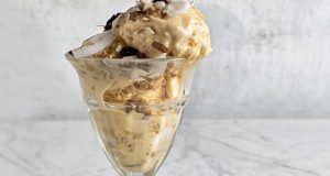 Συστατικά 100 γρ. αμύγδαλο φιλέ 200 γρ. κρέμα γάλακτος 35%, παγωμένη 8 αβγά, μέτρια 100 γρ. νερό 200 γρ. ζάχαρη κρυσταλλική 1 κ.γ. εκχύλισμα βανίλιας ξύσμα πορτοκαλιού, από 1 πορτοκάλι Για το σερβίρισμα 50 γρ. αμύγδαλα, ωμά 50 γρ. cranberries, αποξηραμένα 20 γρ. καρύδα, σε flakes Μέθοδος Εκτέλεσης...