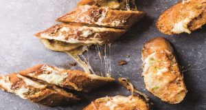 Υλικά 150 γρ. κεφαλογραβιέρα ή παλαιωμένο κασέρι ή πεκορίνο, χοντροτριμμένο 6 κουτ. σούπας βούτυρο, λιωμένο 1 μπαγκέτα, γαλλική ή χωριάτικη 1/3 κουτ. γλυκού ρίγανη 1 μεγάλη...