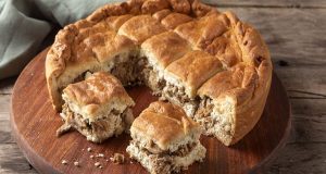 Συστατικά Για τη γέμιση 2 κιλά αρνίσιο μπούτι, με το κόκκαλο, σε μερίδες αλάτι πιπέρι 5 κ.σ. ελαιόλαδο 1 1/2 λίτρο νερό 150 γρ. μυζήθρα, ξερή, τριμμένη 150 γρ. ξινομυζήθρα 180 γρ. ανθότυρο 150 γρ. γραβιέρα, τριμμένη 2 κλ. δεντρολίβανο ξύσμα λεμονιού, από 1 λεμόνι Για...