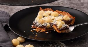 ΥΛΙΚΑ Για τη ζύμη: 145 γρ. αλεύρι αμυγδάλου 55 γρ. maple syrup 40 γρ. καρύδα, τριμμένη 25 γρ. λάδι καρύδας, λιωμένο Για τη γέμιση: 400...